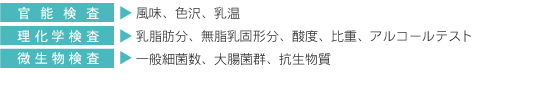 生乳を受け入れる前にタンクローリーからサンプルを採取し、官能検査、理化学検査及び微生物検査など、規格基準に基づいて、生乳の品質を厳しくチェックしています。